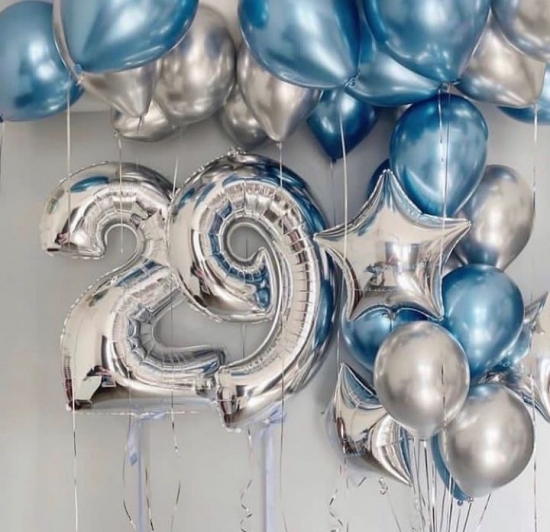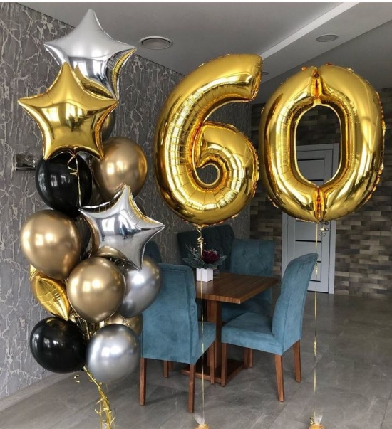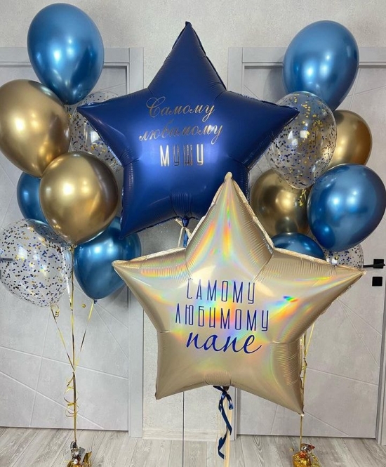 Код: 1628 Сет на 29 лет Шары хром:30шт. Цифры:2шт. Звезды:3шт. 4000 грн. грн.В корзину Код: 1629 Любимому мужу и папе Звезды 90см. с надписью:2шт. Шары хром и с конфетти:14шт. 3200 грн. грн.В корзину Код: 1631 Для мужчины 60лет Цифры:2шт. Звезды:4шт. Шары:12шт. 2600 грн. грн.В корзину