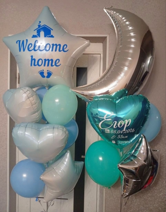 Код: 1637 Встреча малыша Звезда с декором:1шт. Месяц:1шт. Звезды,сердца:5шт. Шары:10шт. 2650 грн. грн.В корзину Код: 570 Букет для малышки 1 Обычные шары:8шт. Сердца:2шт. 970 грн. грн.В корзину Код: 571 Букет для малышки 2 Обычные шары:4шт. Шары с конфетти и хромы:3шт. Большая фигура:1шт. Сердце, круг:2шт. 1300 грн. грн.В корзину